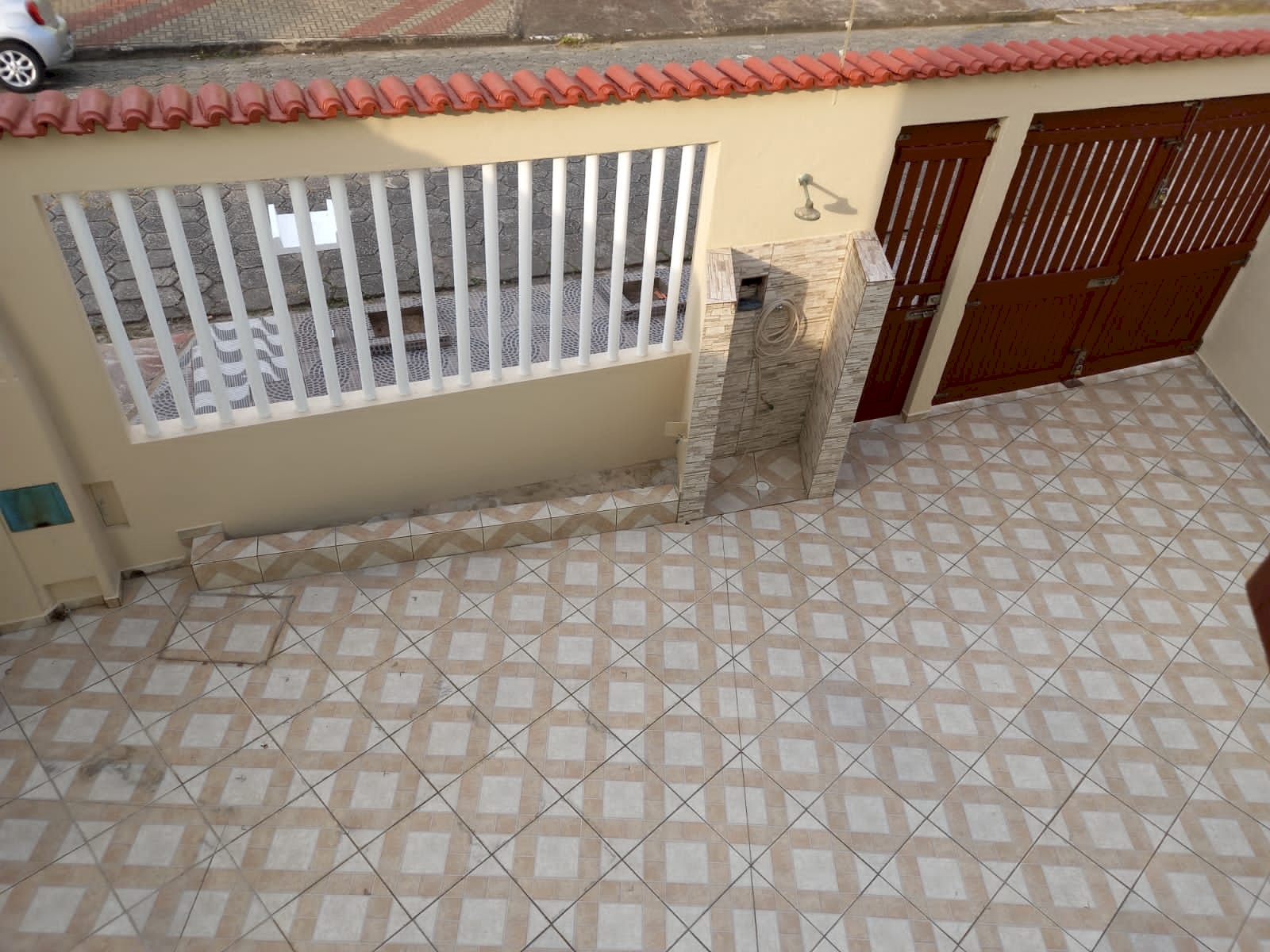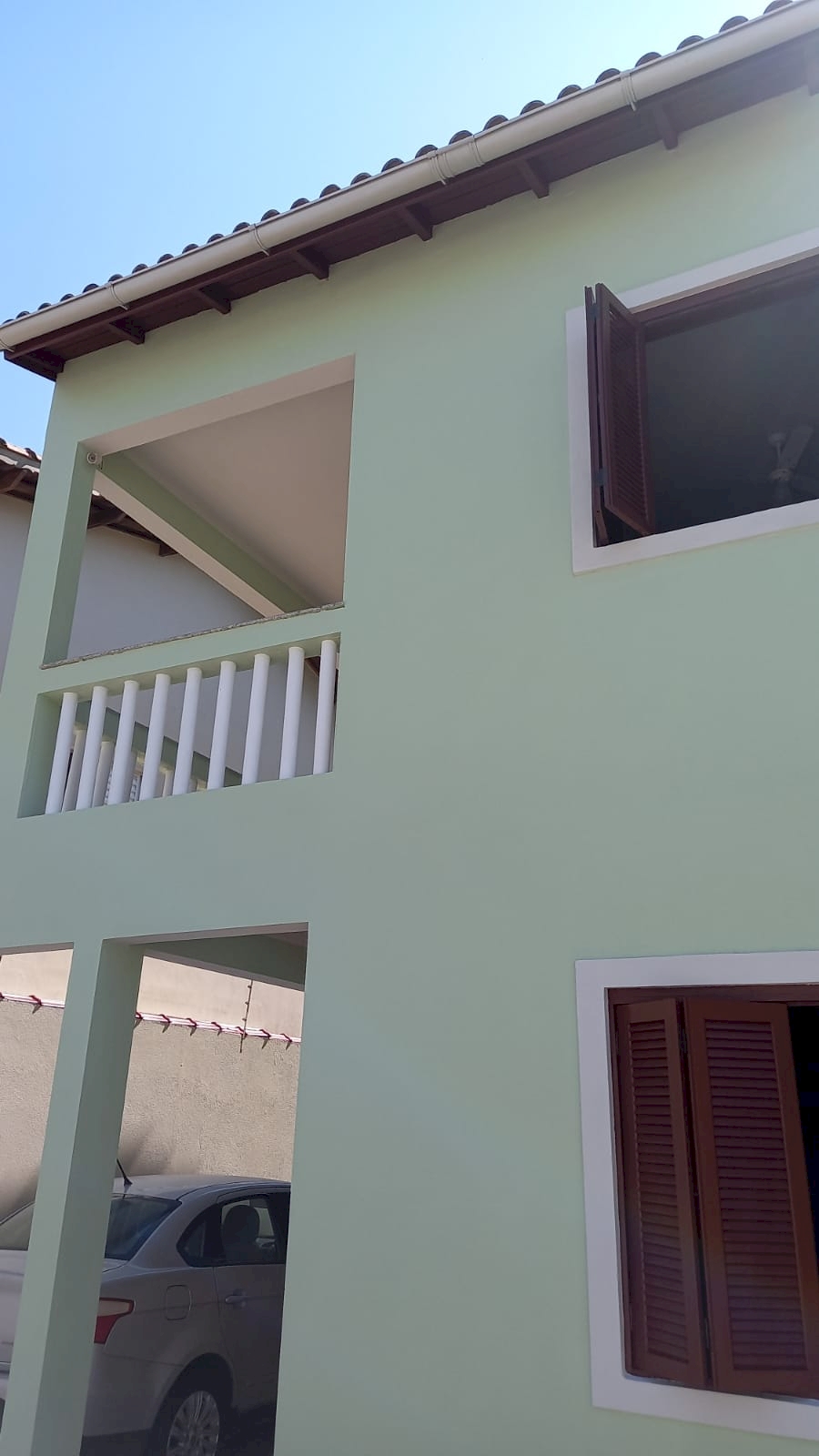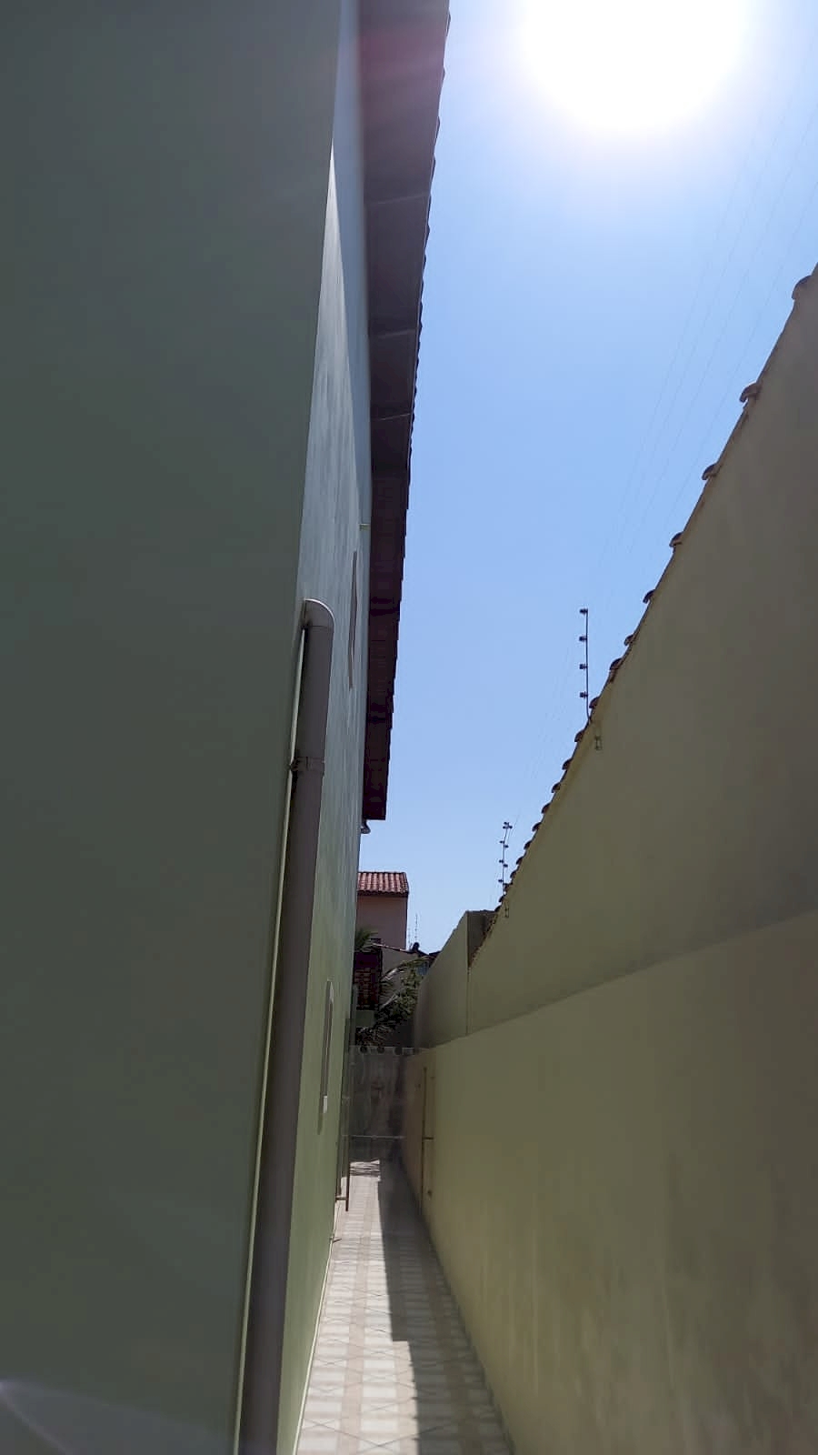 - Quintal nas laterais e frente, espaço nos fundos com gramado plantas e coqueiro.