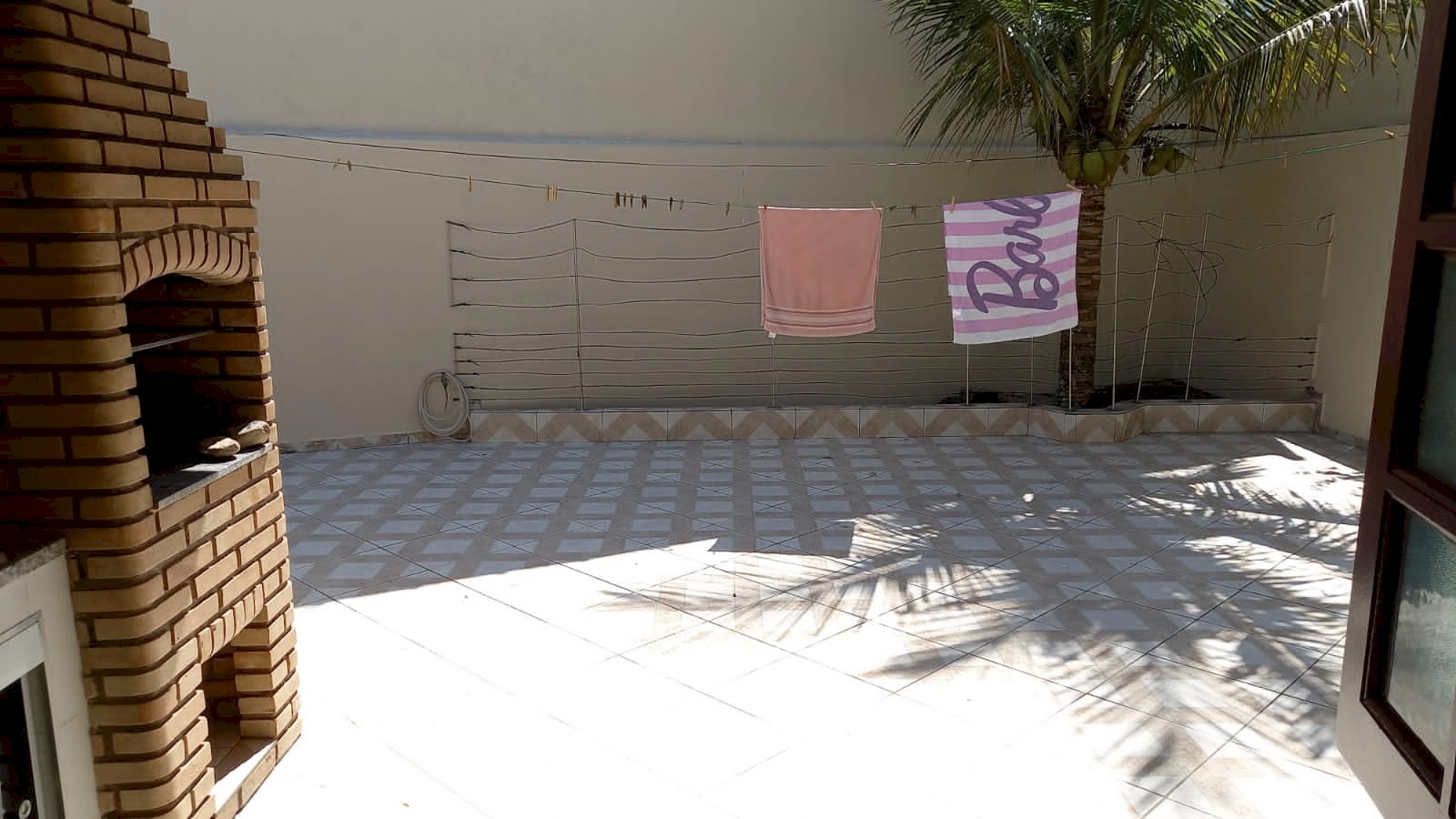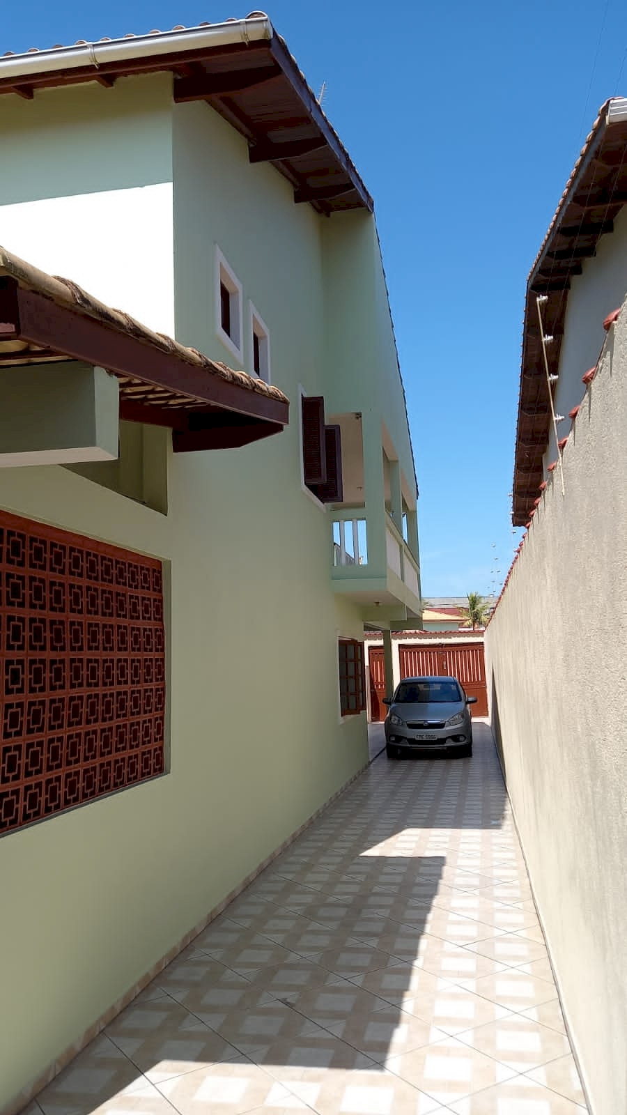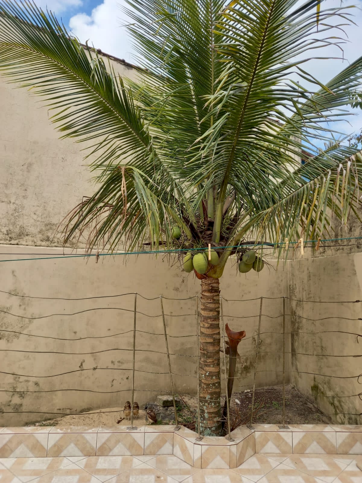 - Quintal nas laterais e frente, espaço nos fundos com gramado plantas e coqueiro.