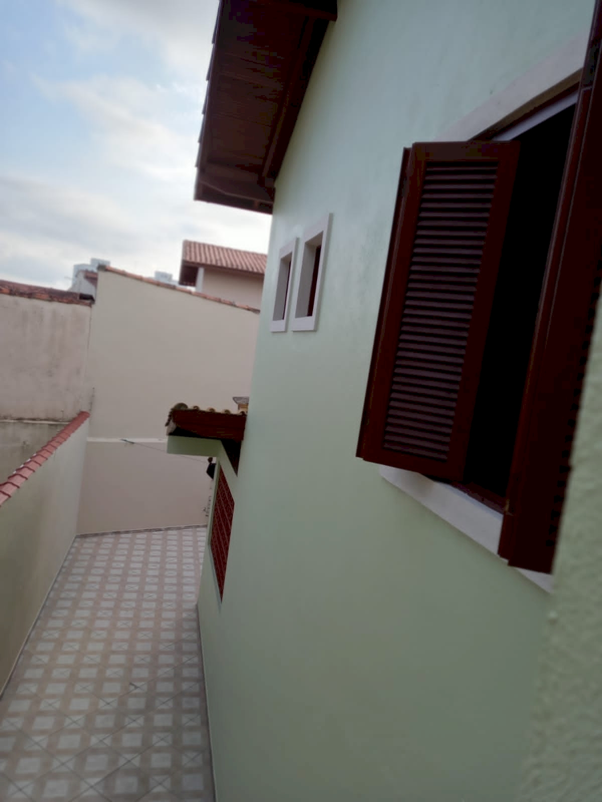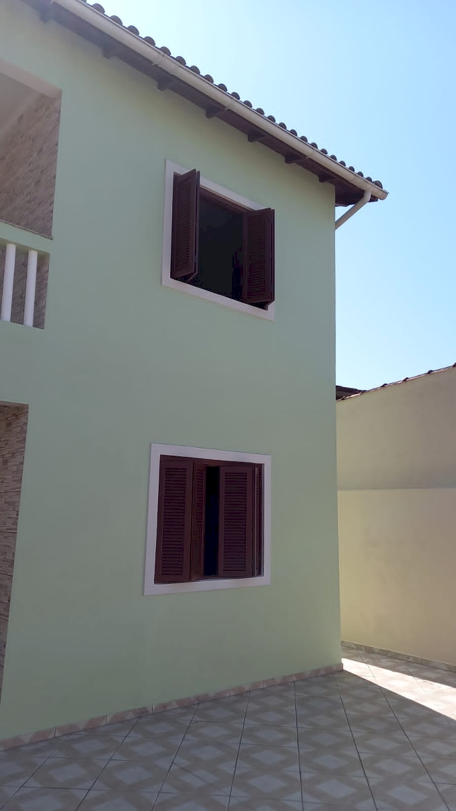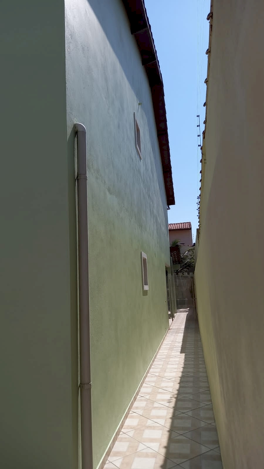 - Quintal nas laterais e frente, espaço nos fundos com gramado plantas e coqueiro.